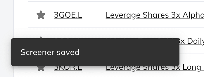 It should look like this when the screener saves successfully, or an error message if save fails: