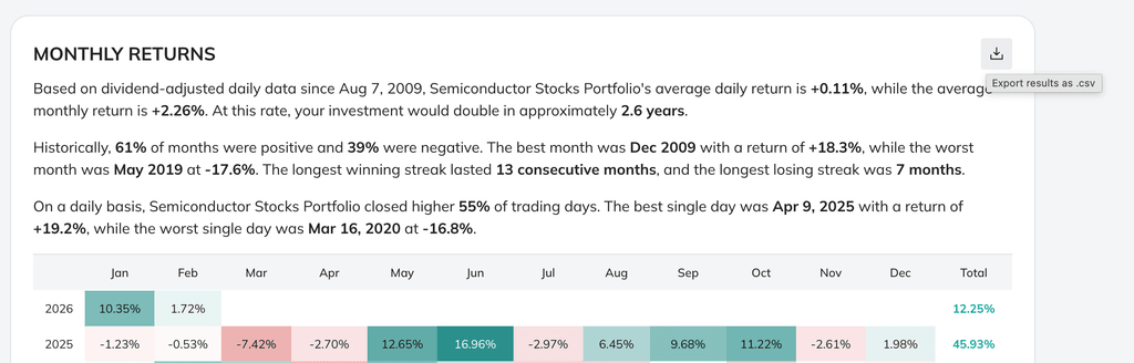 Hey, yes - both allocation and monthly returns can be exported as CSV. There's an export button right above the tables: